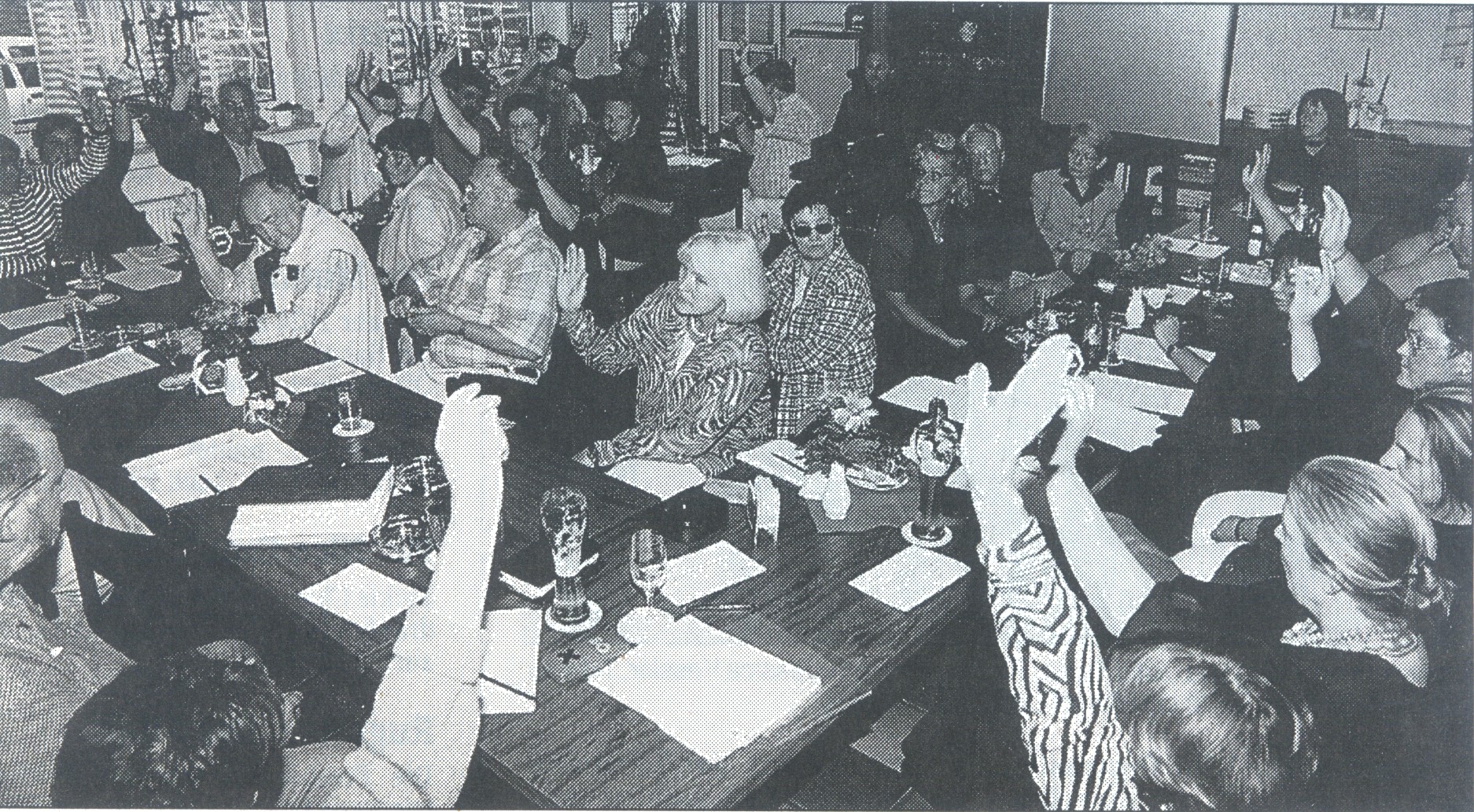Heinz Henneken gewählt, seine Stellvertreter sind Jürgen Schnier und Brigitte Korn. Außerdem wurden gewählt: Renate Seidel und Claudia Friese als Schriftführer, Gerd Brands und Wolfgang Krüsmann als Kassenführer, Ronny Schneider, Lore Penzel, Peter Biersching, Hannes Holtbrügge und Theo Lettgen junior als Beisitzer sowie die drei jeweiligen Rentmeister der Pumpennachbarschalten Eppinghovener Tor, Holzmarkt und Wölle Pump Marga Schuchardt, Heinz Schlippes und Angelika Schnitzler. Der Jahresbeitrag beträgt 36 Mark, Aufnahmeformulare sind bei Wolfgang Krüsmann, Duisburger Straße 34 (Johannahaus), erhältlich. (rs) RP 25.06.1999 |