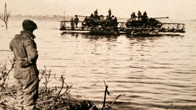 Die Amerikaner bei der Rheinüberquerung 1945 zwischen Wallach und Ork.- Foto(1): Privat Voerde: In der letzten Märzwoche 1945 querten die Alliierten den Rhein. Die Bevölkerung hatte zuvor bereits unter verstärkten Bombenangriffen gelitten. In der letzten Märzwoche vor 75 Jahren endete für die Voerder und auch für die Dinslakener Bevölkerung faktisch der Zweite Weltkrieg, dessen Ende in Europa mit der Kapitulation der Deutschen am 8. Mai offiziell besiegelt wurde. Monate zuvor bereits litt auch die Bevölkerung am Niederrhein unter verstärkten Bombenangriffen. Heute ist bekannt, dass die Bombardierung Dinslakens am 23. März 1945 und der Artilleriebeschuss unter anderem auf die Voerder Rheindörfer nur ein Ziel hatten: die Vorbereitung des Rheinübergangs. Der Übermacht der Alliierten stand auf deutscher Seite nur eine zahlenmäßig kleine und geschwächte Verteidigungsgruppe gegenüber. Am 9. März hatte Feldmarschall Bernard Law Montgomery seine ersten Anweisungen für den Rheinübergang herausgegeben und den 23. März als ersten Angriffstag festgesetzt. Eine nicht gerade leichte Aufgabe, denn „der Rhein war ein schreckliches militärisches Hindernis, besonders was seine nördlichsten Teile angeht“, schrieb der damalige Oberkommandierende der alliierten Streitkräfte und spätere Präsident der Vereinigten Staaten, Dwight D. Eisenhower, in seinem Buch „Kreuzzug in Europa“. Eine sorgfältige Vorbereitung erfolgte in den Wochen vor dem Übergang. Für Eisenhower stellte die Rheinüberquerung die größte und schwierigste Operation seit der Landung an der Küste der Normandie dar. Lange vor der Invasion hatten Soldaten an Flüssen in Großbritannien umfassende Versuche angestellt, um herauszufinden, welche Art von Landungsbooten am geeignetesten wären und welche Lasten sie befördern könnten. Kurz vor dem Angriff wurde selbst an der Maas in den Niederlanden noch geübt. |