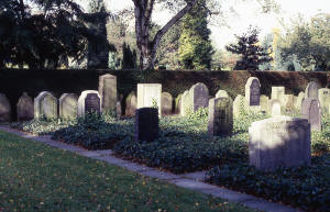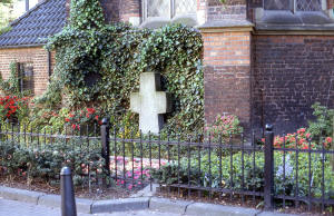 Der Friedhof an der St.-Vincentius-Kirche Bereits vor Erhebung zur selbständige Pfarrgemeinde gehörte zu der damaligen Curatkapelle auch ein Friedhof. Schon früh hatte sich in den christlichen Gemeinden der Brauch gebildet, die Verstorbenen in der Nähe der Märtyrer, das heißt in den Vorhöfen der Kirche zu bestatten. Dieses Areal war von einer Mauer umgeben und bildete den eigentlichen Kirchhof, so wie es auch noch heute bei vielen alten Kirchen zu sehen ist. Die Weihe und Ruhe dieses Bezirks waren unantastbar. Die Mauer, die den Kirchhof von St. Vincentius umgab, hatte drei Eingänge, in denen eiserne Roste lagen, die das Vieh vom Begräbnisplatz abhalten sollten. Bischöfe, Äbte oder auch angesehene weltliche Stifter durften in der Kirche beigesetzt werden. Die Gräber in der Kirche wurden mit schweren Steinplatten abgedeckt. Solche Grabplatten lagen bis zur Zerstörung gegen Ende des zweiten Weltkrieges auch vor der Vinzenz-Kirche. Ein Zeichen dafür, dass in dieser Kirche Beisetzungen stattgefunden haben. So wissen wir anhand alter Urkunden von einem sogenannten Erbbegräbnis des Rittersitzes Bärenkamp. Auf dem Friedhof der Vinzenz-Kirche wurden "von jeher Leichen mit allen Confessionen" beerdigt. Der Grund hierfür war, "dass früherhin jede Haußstädte einen Begräbnisplatz darauf hatte, und dass, wenn katholische Wohnungen an protestantische Einwohner verkauft wurden, die dem Haus annexe Begräbnisstelle auf sie überging, und von ihnen genutzt werden konnte, wie es dann auch wirklich geschah." Jahrhundertelang genügte der kleine, an der Kirche gelegene Friedhof den Ansprüchen der Dinslakener Bürger, obwohl der Raum innerhalb der Mauern knapp war. Dies war allerdings auch nur möglich wegen der sich stets wiederholenden, vorzeitigen Wiederbelegung der Grabstellen. Hinter der Kirche stand ein Beinhaus, also ein Haus, in dem die Gebeine gelagert wurden, wenn es die Weiterbenutzung der Grabstätte erforderte. Auf ersuchen der Stadt sollte das an der Kirche stehende Leichenhäuschen im Jahre 1813 abgebrochen werden, weil es die Kirche entstellte. Die im Beinhäuschen aufbewahrten Gebeine wurden auf der Südseite der Kirche beigesetzt. 1818 wurde das Beerdigen auf diesem Friedhof untersagt. Heute erinnern nur noch die durch einen schmiedeeisernen Zaun eingefriedete Fläche vor dem ehemaligen Ostchor der Vinzenz-Kirche und eine Hinweistafel aus Bronce an den ältesten Friedhof der Stadt Dinslaken.