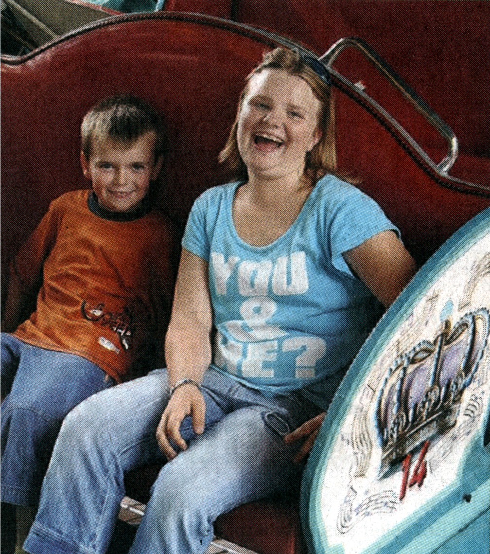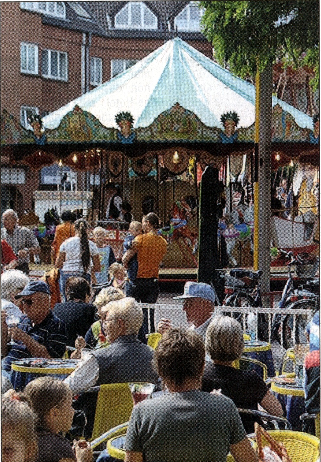 Kettenflieger, das Pferdekarussell und die Kinderschiffschaukel beobachten.