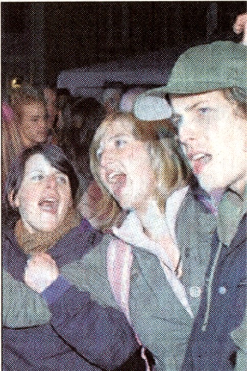 Die Gruppe “Mottek” sorgte für Stimmung. Von alkoholangeheizter aggressiver Stimmung war auch gegen 23 Uhr nichts zu spüren. Dafür wurde vor der Bühne teeniemäßig gekreischt. Ein Applausometer sollte die Wahl zur Maikönigin entscheiden, der hohe Anteil der kranzlosen Mädchen auf der Bühne wies auf spontane Bewerbungen hin. Schließlich kürte die Jury die 16-jährige Anna, denn sie strahlte unter einem kunstvoll geflochtenen Kranz. „Den habe ich von einem lieben Freund bekommen, die anderen haben mich dann überredet, damit auf die Bühne zu gehen". Dank guter Freunde zur Maikönigin, da hat die Jury doch die richtige Wahl getroffen (bes). Viele Jugendliche waren auf den Altmarkt gekommen und feierten ausgelassen. NRZ 02.05.06