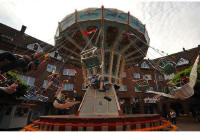 auf Schiffschaukel, Berg- und Talbahn, Kettenflieger und Holzriesenrad aus