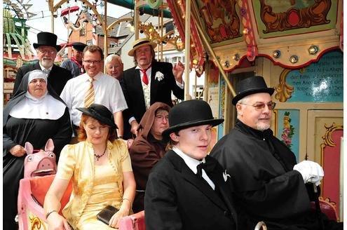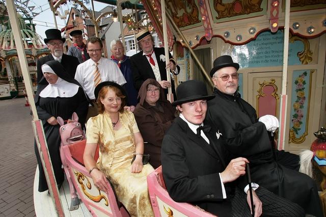 Idee aus den Niederlanden mitgebrachtMadame Eliese schaut in die Zukunft und der flotte Hans geht wieder mal auf Brautschau. Lebemann Ernesto, das schwarze Schaf der Familie Tekathen, ist eigens zur Nostalgiekirmes aus Südamerika zurückgekehrt. Ist er scharf aufs Erbe? Seinen Anteil hat er nämlich längst durchgebracht. Angefangen hat diese Zeitreise im niederländischen Deventer. Dort findet an jedem vierten Adventswochenende das Charles-Dickens-Festival statt. Scrooge, die kleine Nell, David Copperfield und viele mehr erwachen für zwei Tage zum Leben. Rund 900 Akteure beteiligen sich dort am Spiel, angefangen haben sie mit 19 Mitspielern. Birgit Gargitter und Beate Hettmer hatten sich das Spektakel angeschaut und die Idee mit nach Dinslaken gebracht. In Cordula Hamelmann (Museum Voswinckelshof), Gisela Marzin (Stadtarchiv), Ulrich Tekathen, Erich Weichert und Wolfgang Krüssmann wurden schnell Mitstreiter gefunden, die Nostalgiekirmes als geeigneter Zeitpunkt auserkoren. Bereits im 2010 startete das Spektakel; es kam bei den Besuchern bestens an. In diesem Jahr ist die Zeitreise ein wenig angewachsen. „Wir hoffen auf Beteiligung der Besucher und Vereine, die in historischen Kostümen den Marktplatz stürmen“, so Tekathen. Die besten Kostüme sollen übrigens prämiert werden, doch bitte an die Zeit des 19. Jahrhunderts halten! Zwar werden „Anjas Kids on Ice“ in Barockkostümen als fahrende Schaustellertruppe kommen, und auch einzelne Kirmeskarussells stammen nicht so ganz aus der Epoche, doch auf das Gesamtflair kommt’s an, so die Organisatoren. Das Museum Voswinckelshof mit seiner Ausstellung „Museumsschätze“ wird einbezogen in die Zeitreise. Hier sind die 1950-er Jahre anzuschauen. Das nicht nur im (eintrittsfreien) sondern auch rund ums Museum. Historische Traktoren und Hiesfelder LandfrauenAm Sonntag, 21. August, werden dort gegen 12.30 Uhr die Motoren dröhnen, wenn die historischen Trecker der Oberlohberger Aufstellung auf dem Gelände vor dem Museum nehmen. Das Bild runden die Hiesfelder Landfrauen ab, die über ihre Arbeit im Laufe der Jahrhunderte berichten und ihre Erzeugnisse feilbieten. Die alte historische Backstube ist angeheizt. Und auch alte Zweiräder finden ihr Heim für einen Tag am Museum. Eröffnet wird die dazugehörige Nostalgiekirmes am Freitag, 19. August, 14 Uhr, durch Bürgermeister Michael Heidinger. Er wird in einer alten Kutsche auf den Altmarkt fahren, begleitet von einem seiner Vorgänger, dem Bürgermeister von Buggenhagen, Margarete Böing, Valerie Voswinckel, der Nonne Maria Gloriosa, dem Kiepenkerl, Ernesto und all den anderen liebevoll zurecht gemachten Figuren. Holzriesenrad, Raupe, Pferdekarussell werden wieder nostalgische Gefühle aufleben lassen. Highlight in diesem Jahr ist „Müllers Autoscooter“, eine der letzten auf Holzbasis gebauten und in liebevoller Kleinarbeit restaurierten Buden. Leider hat der TÜV dem Besitzer einen Strich durch die Rechnung gemacht. Fahren dürfen die alten Autos nicht, zugelassen sind nur die Scooter aus dem Jahr 1972. „Doch das tut der Historie des großen Kirmeskarussells keinen Abbruch“, verspricht Tekathen, „allein die Schaubude ist ein Blickfang.“ Am Sonntag dann steigt zusätzlich die Zeitreise mit der freiwilligen Feuerwehr Eppinghoven und ihrer Wasserpumpe von 1883 nach dem ökumenischen Gottesdienst (10.30 Uhr) und all den historischen Gestalten. Kinder, die zum Gelingen beitragen wollen und vielleicht Blockflöte spielen, sind herzlich willkommen. Sie dürfen auch ruhig einen Zylinder aufstellen und sich ein wenig Taschengeld verdienen. In alte „Klamotten“ geschmissen, das Gesicht ein wenig „verdreckt“ und schon sind die armen Musikanten fertig. Birgit Gargitter; NRZ 12.08.2011 |