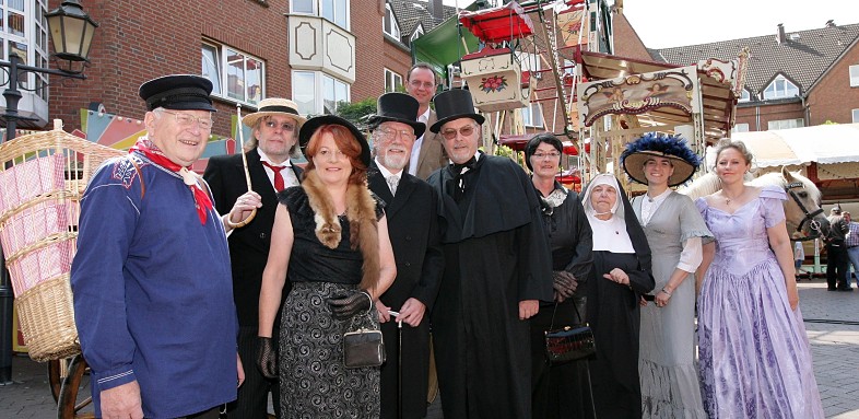 Eine Reise durchs 19. JahrhundertEin Wochenende voller Nostalgie in Dinslakens Altstadt: Kirmes, historische Typen, Kostüme und mehr werden die Szenerie bestimmen. Eröffnet wird die dazugehörige Nostalgiekirmes am Freitag, 19. August, 14 Uhr. Wenn Karoline Wedding, eine Witwe von nunmehr 82 Lenzen, tiefgebeugt über ihren Waschzuber steht, Betty Tendering tiefsinnige Briefe an Georg Weerth schreibt, sich Margarete Böing mit dem distinguierten Bürgermeister von Buggenhagen beim Plausch köstlich amüsiert, dann ist das 19. Jahrhundert eingekehrt in die Altstadt. „Die Altstadt lebt, das stellen wir mit dieser Zeitreise und der Nostalgiekirmes unter Beweis“, erklärt IG-Altstadtchef Ulrich Tekathen. Am 19. und 21. August werden während der Nostalgiekirmes (19. bis 22. 8.) wieder liebe alte Dinslakener Bekannte durch die Altstadt schweifen. Karl Lilienthal, der bekannte Fotograf aus der Jahrhundertwende, wird Fotos „schießen“, Valerie Isabella Degener, die letzte Voswinckel, wird Hof halten, ein Kiepenkerl halt machen in der Altstadt, ein Leierkastenmann seine Lieder in alter Weise spielen, der Magister Speculatius die Kinder mit seinen Kräutereien anlocken. Sie alle werden nächste Woche anlässlich