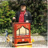 eine Drehorgel zulegte und nun, wo immer er eingeladen wird, für ein paar