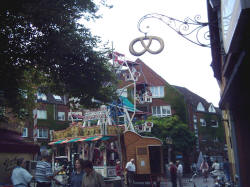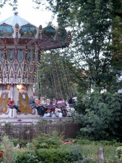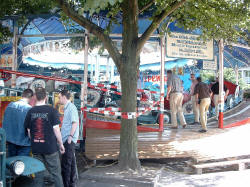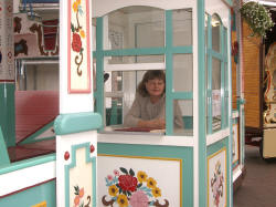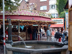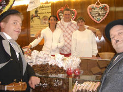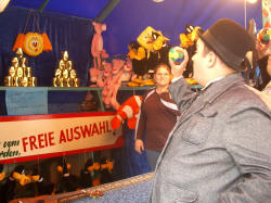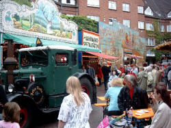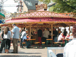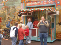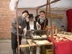 | Zwischen den Fahrgeschäften konnte man alte Handwerkskunst zu sehen: Einen Kammacher, einen Senfmacher und die Kunst des Scherenschnitts. | ||