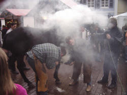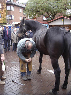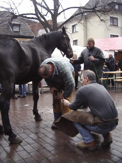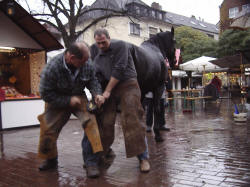 Der Hufschmied war zu Gast auf dem Martinimarkt. Er zeigte allen Interessierten, wie ein Pferd beschlagen wird.