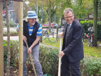 Ein neues Bäumchen pflanzten Dr. Ulrich Tekathen und Bürgermeister Dr. Michael Heidinger (von links)