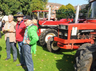 Rund um die Stände parkten Oldtimer-Trecker der Treckerfreunde Oberlohberg. Foto: Heiko Kempken Die Stars des Tages nannten sich Greenstar, Santana und Gala. Alle Apfelsorten sind frisch gepflückt und ungespritzt und wachsen in der Region. „Noch sind genügend Vorräte vorhanden, doch dieses Jahr hat der Frost auf der Apfelblüte im Frühjahr viel zerstört und für eine geringe Ernte gesorgt“, klagten die Apfelbauern. Doch Dank des guten Zusammenhaltes in Dinslaken haben es alle gemeinsam geschafft, ausreichend Äpfel zusammen zu bekommen. Auch Bürgermeister Dr. Michael Heidinger lobte die gelungene Aktion der IG Altstadt. Dr. Ulrich Tekathen war überzeugt: „In drei Jahren werden wir den ersten Saft für das Fest aus den Äpfeln unseres Lutherbaums pressen können.“